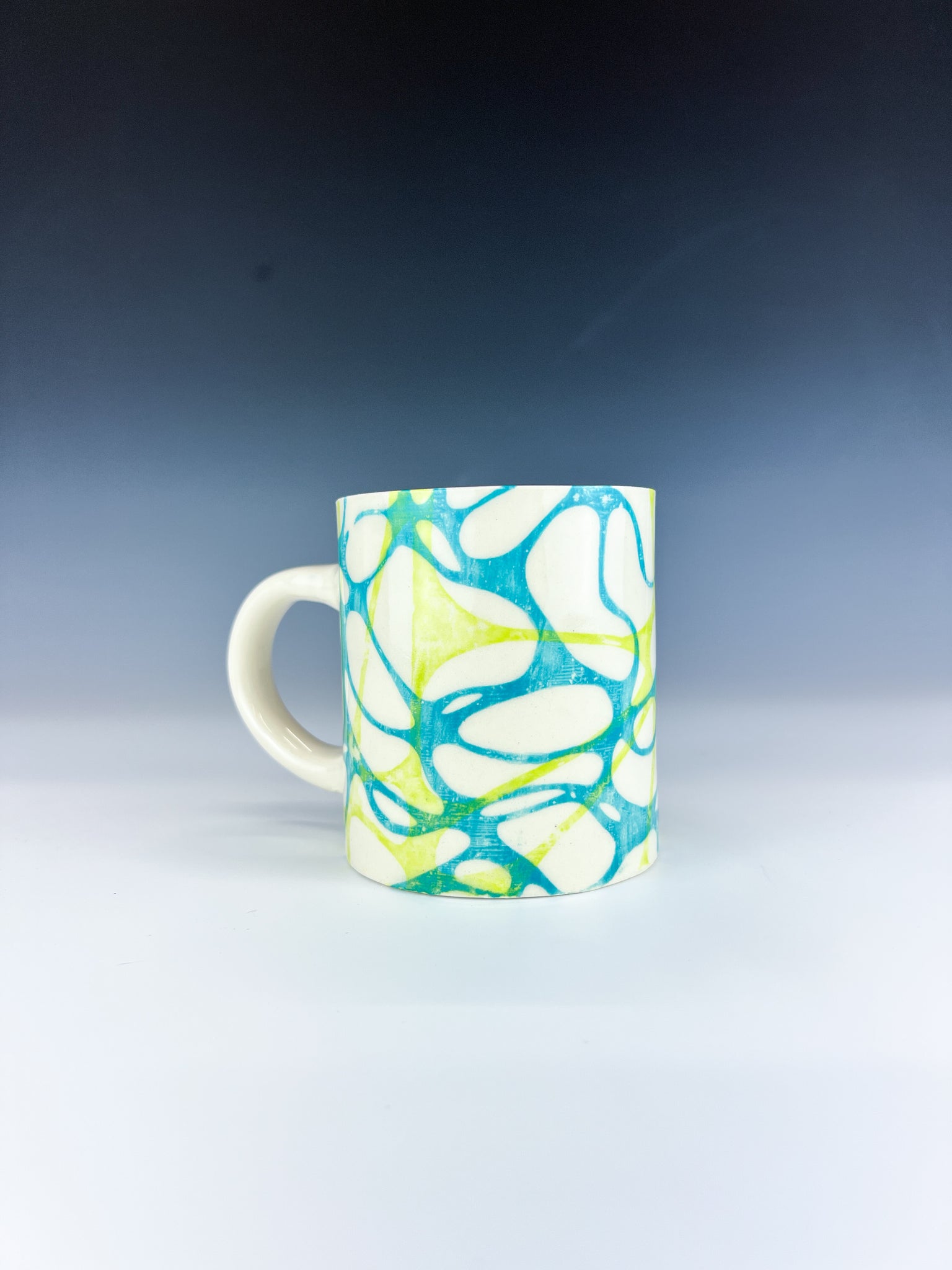 This mug is all about color, pattern, and a little bit of chaos in the best way! Each one is made by hand and screen-printed with layered designs that overlap and mix to create something totally unique. No two are ever the same!